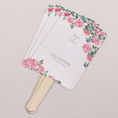 Ein praktischer Fächer mit dem detaillierten Programmablauf Ihrer Feier - als Info für Ihre Gäste und kleine Abkühlung bei großer Hitze.