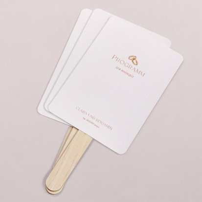 Ein praktischer Fächer mit dem detaillierten Programmablauf Ihrer Feier - als Info für Ihre Gäste und kleine Abkühlung bei großer Hitze.