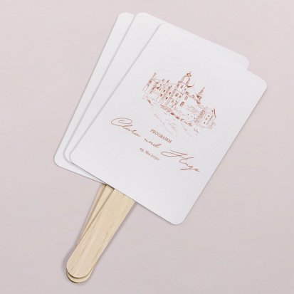 Ein praktischer Fächer mit dem detaillierten Programmablauf Ihrer Feier - als Info für Ihre Gäste und kleine Abkühlung bei großer Hitze.