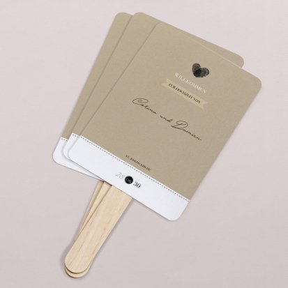Ein praktischer Fächer mit dem detaillierten Programmablauf Ihrer Feier - als Info für Ihre Gäste und kleine Abkühlung bei großer Hitze.