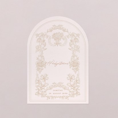 Paare schätzen die große Auswahl an Modellen und Gestaltungsmöglichkeiten unserer Menükarten für die Hochzeit. Ob rustikal, floral, orientalisch oder eine andere Stilrichtung – bei uns finden Ehepaare ganz bestimmt das Muster, das beiden gefällt. Für besonders stilvolle Menükarten bei der Hochzeit wählen sie Karten mit Gold-, Hochglanz-, Silber- oder Kupferveredelung.