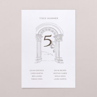 Mit einem Sitzplan finden ihre Gäste ganz leicht zum richtigen Tisch. Einfach am Eingang des Saals aufhängen oder einer Staffelei aufstellen.