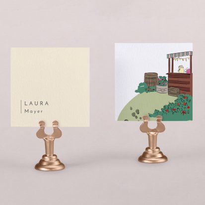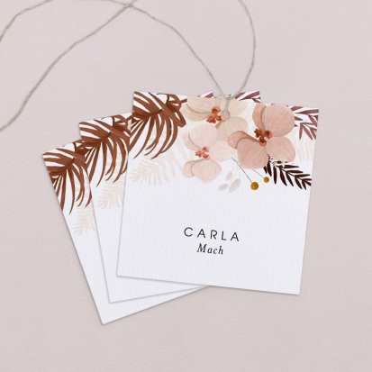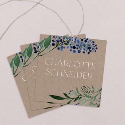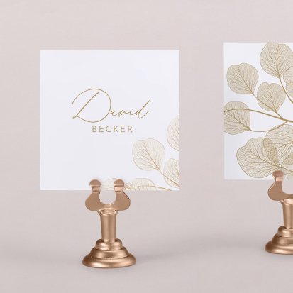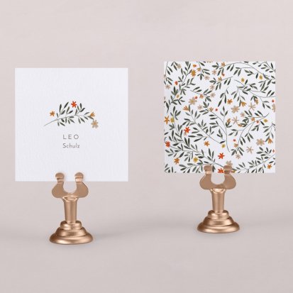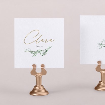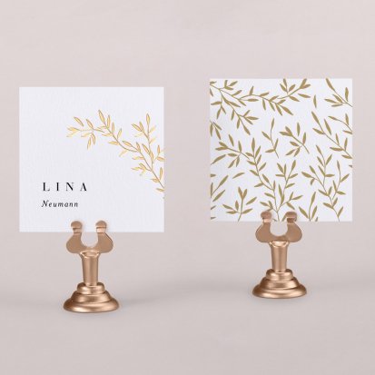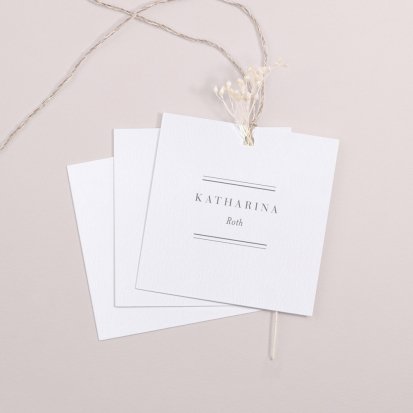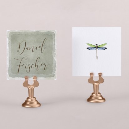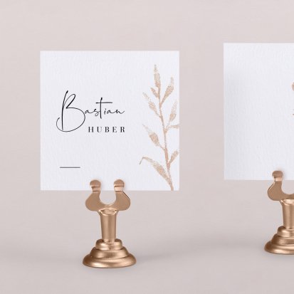 Zeigen Sie Ihren Gästen liebevoll Ihren Platz am Hochzeitstisch! Platzieren Sie die Tischkarte auf der Serviette oder einem anderen Element der Tischdekoration!