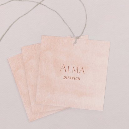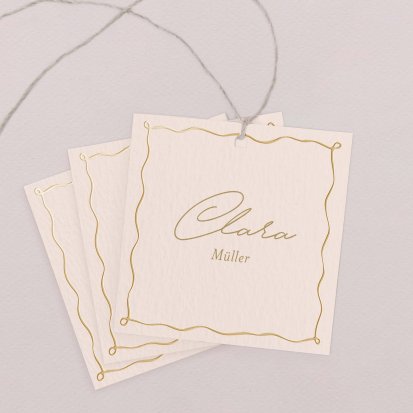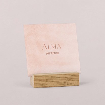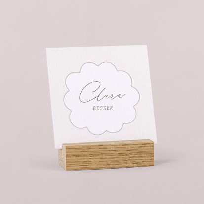 Zeigen Sie Ihren Gästen liebevoll Ihren Platz am Hochzeitstisch! Platzieren Sie die Tischkarte auf der Serviette oder einem anderen Element der Tischdekoration!