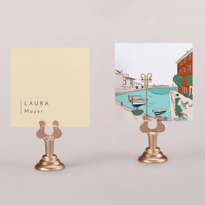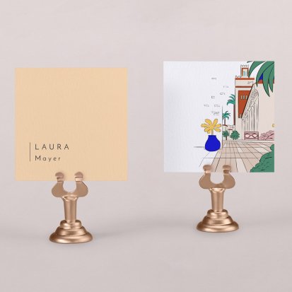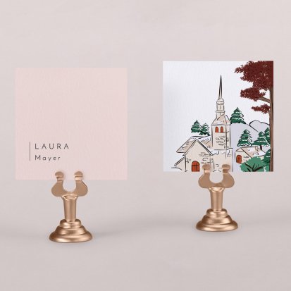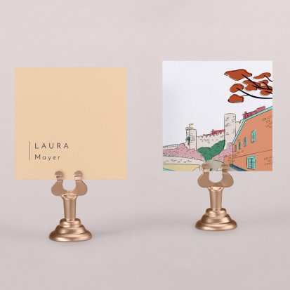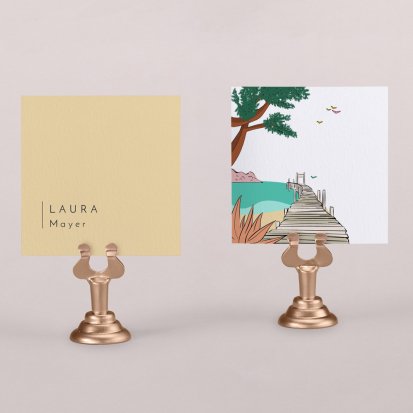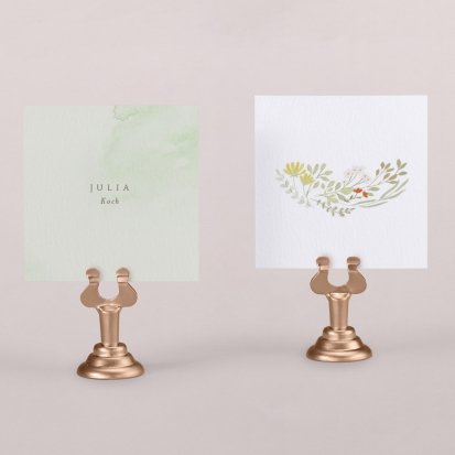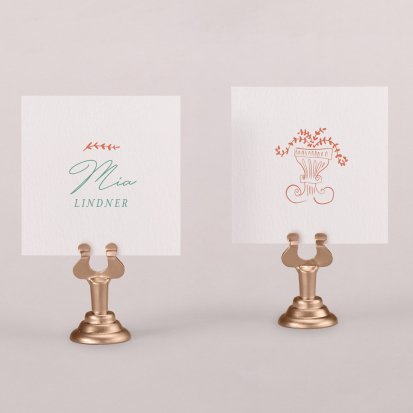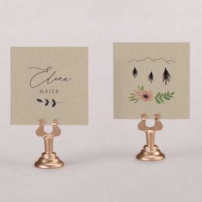 Zeigen Sie Ihren Gästen liebevoll Ihren Platz am Hochzeitstisch! Platzieren Sie die Tischkarte auf der Serviette oder einem anderen Element der Tischdekoration!