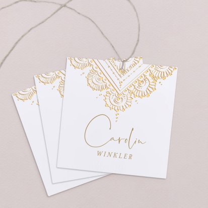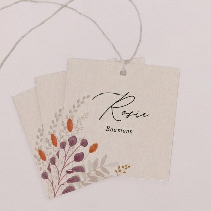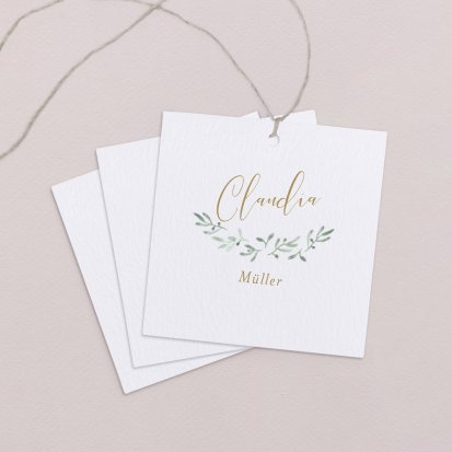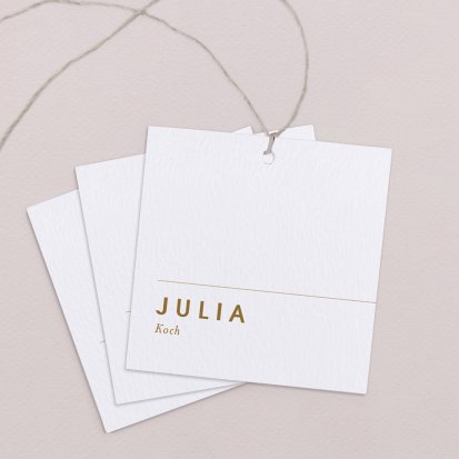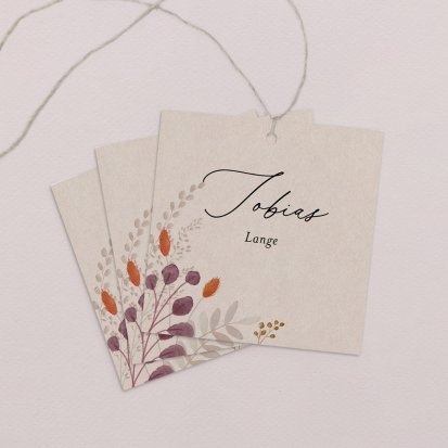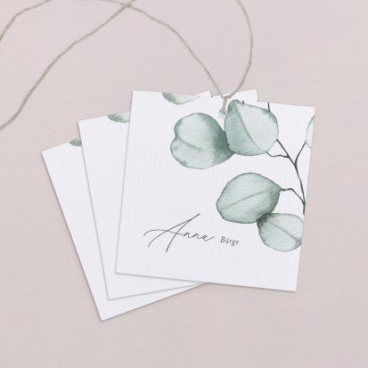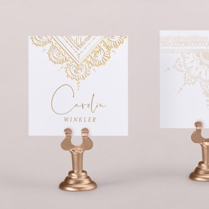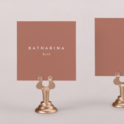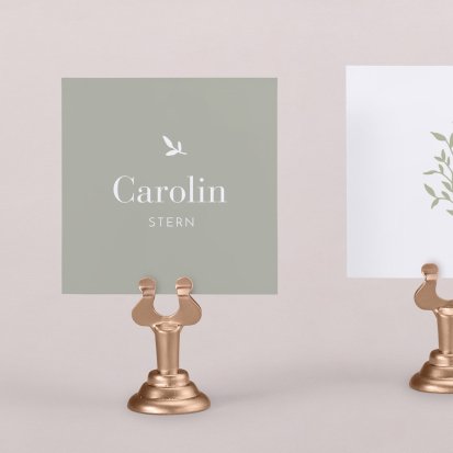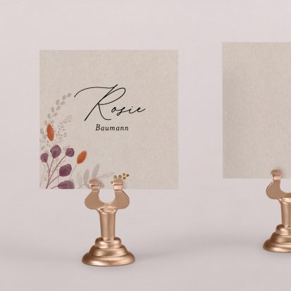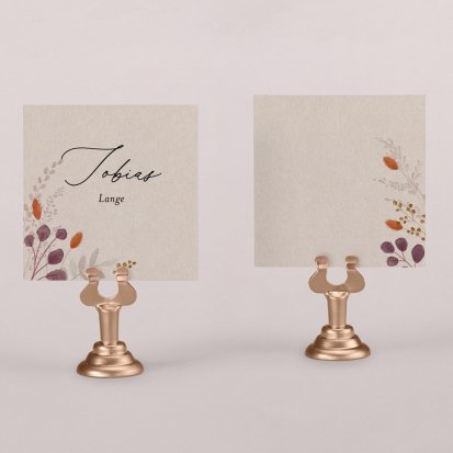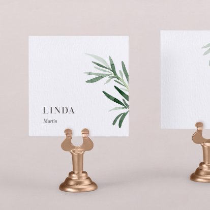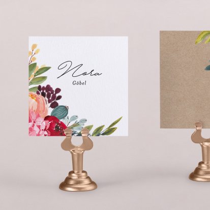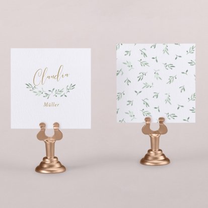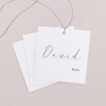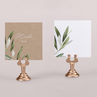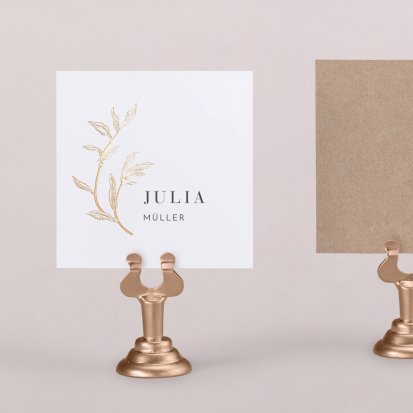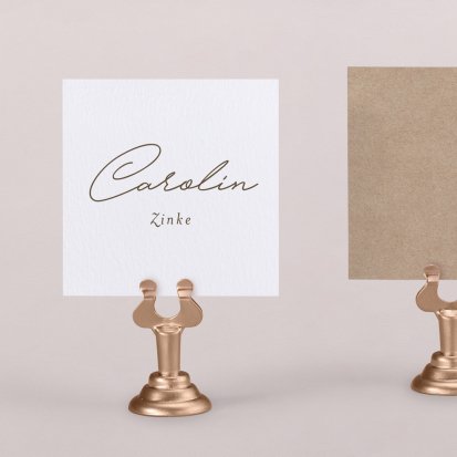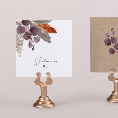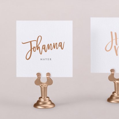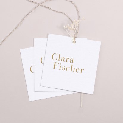 Zeigen Sie Ihren Gästen liebevoll Ihren Platz am Hochzeitstisch! Platzieren Sie die Tischkarte auf der Serviette oder einem anderen Element der Tischdekoration!