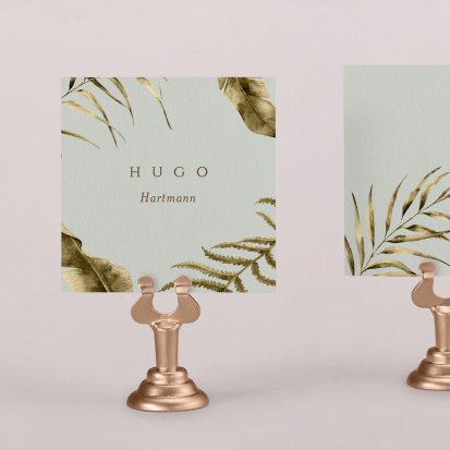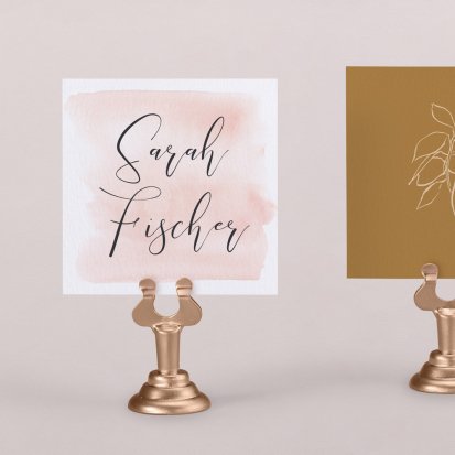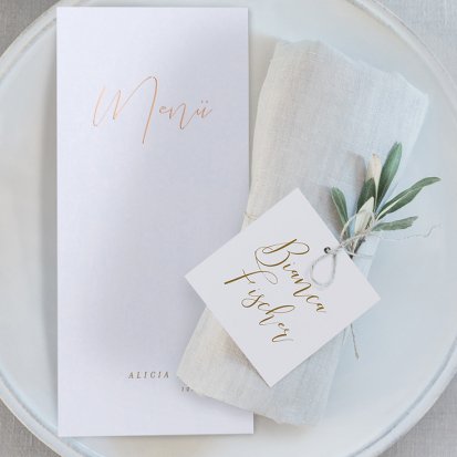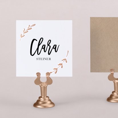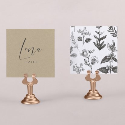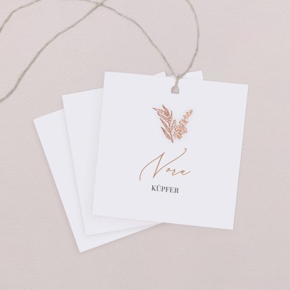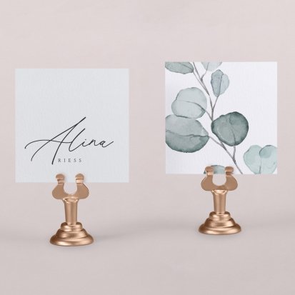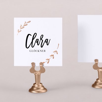 Zeigen Sie Ihren Gästen liebevoll Ihren Platz am Hochzeitstisch! Platzieren Sie die Tischkarte auf der Serviette oder einem anderen Element der Tischdekoration!