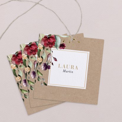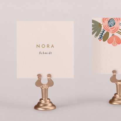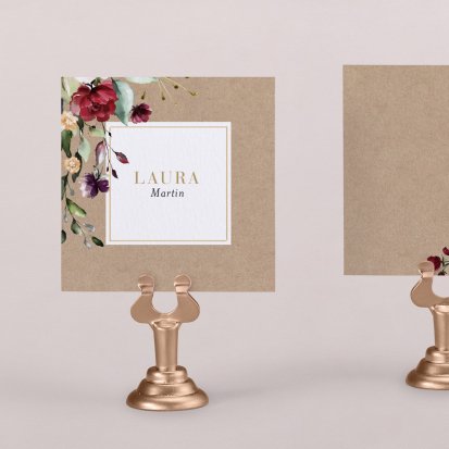Zeigen Sie Ihren Gästen liebevoll Ihren Platz am Hochzeitstisch! Platzieren Sie die Tischkarte auf der Serviette oder einem anderen Element der Tischdekoration!
