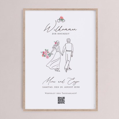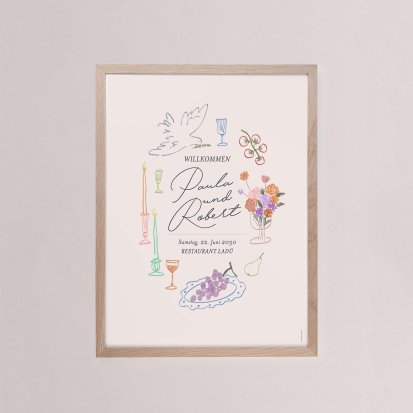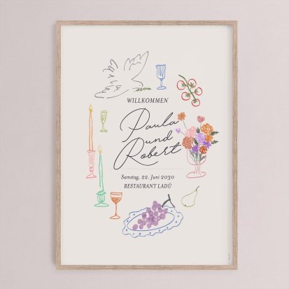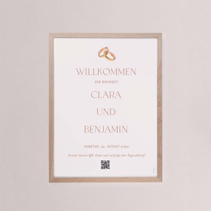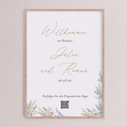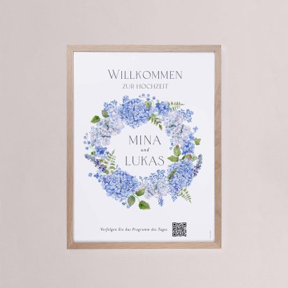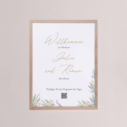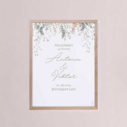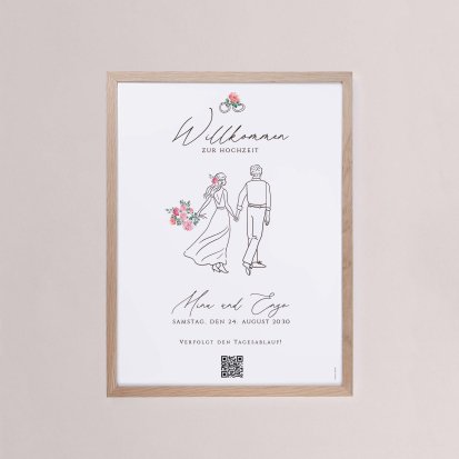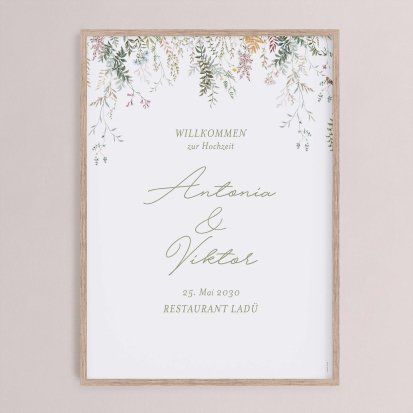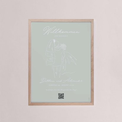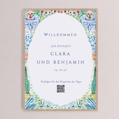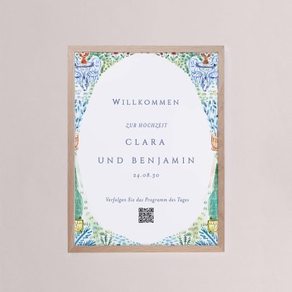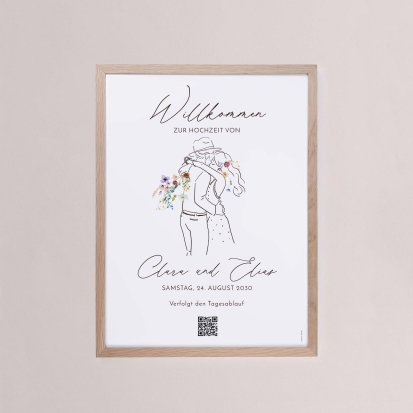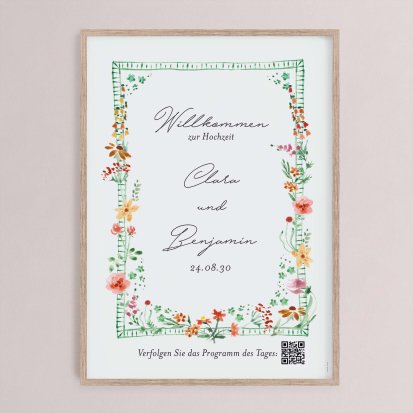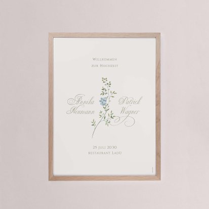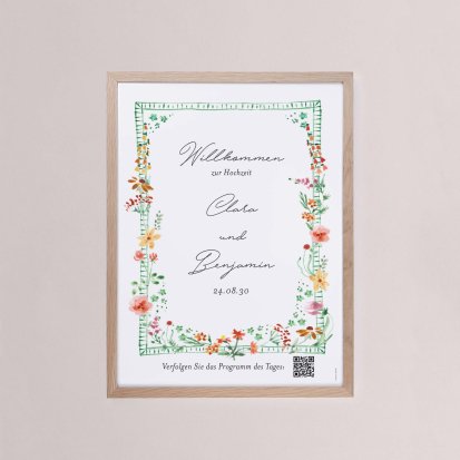 Damit Ihr Willkommensschild nicht nur optisch zum Motto Ihrer Hochzeit und der übrigen Deko und Papeterie passt, sondern auch zu den räumlichen Gegebenheiten vor Ort, haben Sie bei Cotton Bird mehrere Optionen. Zum einen stehen Ihnen zwei unterschiedliche Größen zur Verfügung, zum anderen können Sie zwischen Hoch- und Querformat wählen. Zusätzlich können Sie Ihre Hochzeitsschilder mit einem Holzrahmen versehen oder auch mithilfe einer speziellen Postaufhängung am gewünschten Ort anbringen.