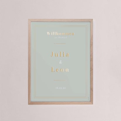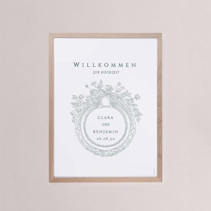 Damit Ihr Willkommensschild nicht nur optisch zum Motto Ihrer Hochzeit und der übrigen Deko und Papeterie passt, sondern auch zu den räumlichen Gegebenheiten vor Ort, haben Sie bei Cotton Bird mehrere Optionen. Zum einen stehen Ihnen zwei unterschiedliche Größen zur Verfügung, zum anderen können Sie zwischen Hoch- und Querformat wählen. Zusätzlich können Sie Ihre Hochzeitsschilder mit einem Holzrahmen versehen oder auch mithilfe einer speziellen Postaufhängung am gewünschten Ort anbringen.
