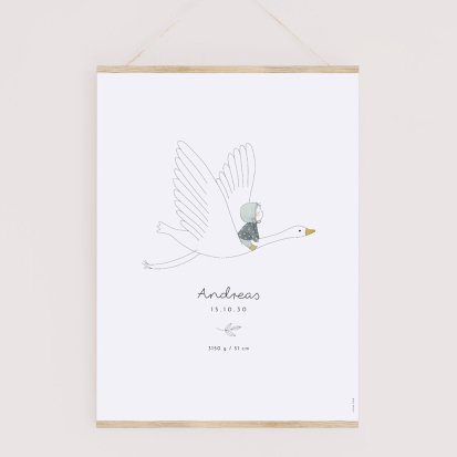 Um die Geburt Ihres Kindes auch in Ihrer Wohnung verewigen zu können, haben Sie bei Cotton Bird zwei Möglichkeiten: Einerseits steht ein maßstabsgetreues Geburtsposter mit dem Abbild Ihres Kindes zur Verfügung. Andererseits gibt es ein Namensbild – ein Poster, das den Namen Ihres Babys auf künstlerische Weise in den Mittelpunkt stellt.