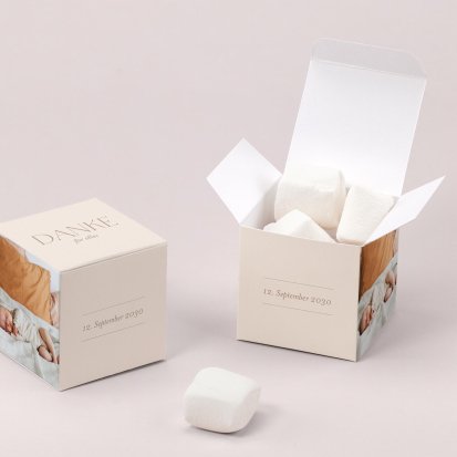 Füllen Sie die Geschenkbox mit dragierten Mandeln, Macaros oder Bonbons als kleines Dankeschön für Ihre Liebsten.