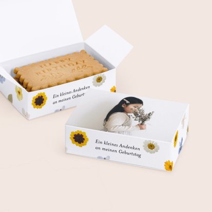 Mit selbstgebackenen Keksen gefüllt und einer persönlichen Notiz gesteltet, ist die Keksbox ein originelles und köstliches Erinnerungsgeschenk für Ihre Geburtstagsgäste.