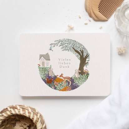 Die gewählte Vorlage zu personalisieren, ist bei Cotton Bird fast noch einfacher, als die Entscheidung für eine passende Vorlage zu treffen. Nachdem Sie diese wichtige Entscheidung gefällt haben, werden Sie zu unserem Online-Bearbeitungstool weitergeleitet. Dieses benötigt keine zusätzliche Software und lässt sich dank Drag-and-drop auch kinderleicht bedienen. Fügen Sie Ihrer Danksagung ein paar liebe Worte, Bildelemente oder Fotos hinzu – und ziehen Sie diese einfach an die gewünschte Stelle. Sie können auch die Größe der einzelnen Elemente anpassen, ebenso wie die Schriftart Ihrer Texte. Haben Sie eine Vorlage mit zusätzlichen Veredelungen oder Fotos gewählt, können Sie diese nun ebenfalls einfügen und gegebenenfalls bearbeiten. Werden Sie kreativ und probieren Sie verschiedene Möglichkeiten aus!
