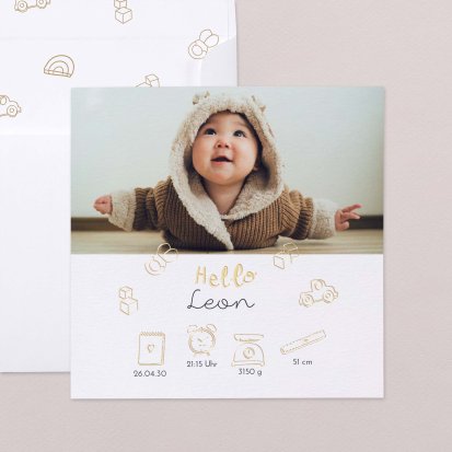 Ihr kleines Wunder hat endlich das Licht der Welt erblickt? Jetzt ist der perfekte Zeitpunkt, um Ihre Freude mit Ihren Liebsten zu teilen. Wählen Sie eine Geburtskarte und gestalten Sie sie ganz individuell mit Fotos und/oder Text, um Ihrem Babyglück Ausdruck zu verleihen.