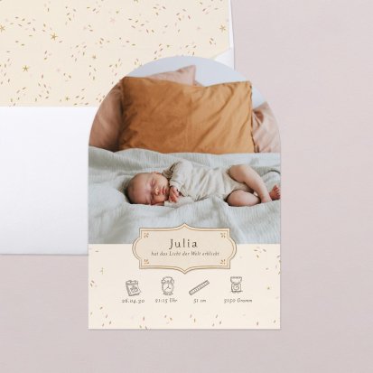 Ihr kleines Wunder hat endlich das Licht der Welt erblickt? Jetzt ist der perfekte Zeitpunkt, um Ihre Freude mit Ihren Liebsten zu teilen. Wählen Sie eine Geburtskarte und gestalten Sie sie ganz individuell mit Fotos und/oder Text, um Ihrem Babyglück Ausdruck zu verleihen.