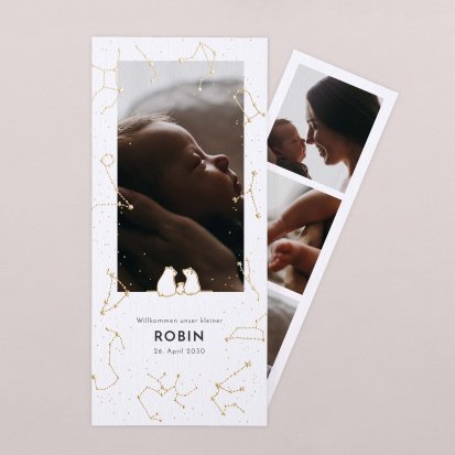 Ihr kleines Wunder hat endlich das Licht der Welt erblickt? Jetzt ist der perfekte Zeitpunkt, um Ihre Freude mit Ihren Liebsten zu teilen. Wählen Sie eine Geburtskarte und gestalten Sie sie ganz individuell mit Fotos und/oder Text, um Ihrem Babyglück Ausdruck zu verleihen.