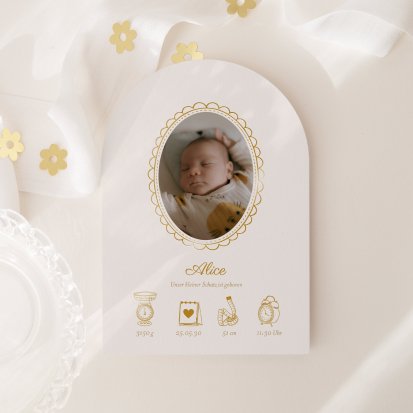 Ihr kleines Wunder hat endlich das Licht der Welt erblickt? Jetzt ist der perfekte Zeitpunkt, um Ihre Freude mit Ihren Liebsten zu teilen. Wählen Sie eine Geburtskarte und gestalten Sie sie ganz individuell mit Fotos und/oder Text, um Ihrem Babyglück Ausdruck zu verleihen.