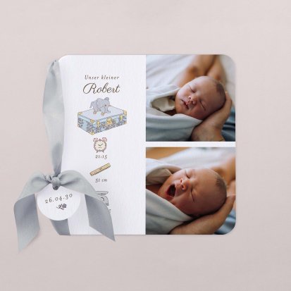 Ihr kleines Wunder hat endlich das Licht der Welt erblickt? Jetzt ist der perfekte Zeitpunkt, um Ihre Freude mit Ihren Liebsten zu teilen. Wählen Sie eine Geburtskarte und gestalten Sie sie ganz individuell mit Fotos und/oder Text, um Ihrem Babyglück Ausdruck zu verleihen.