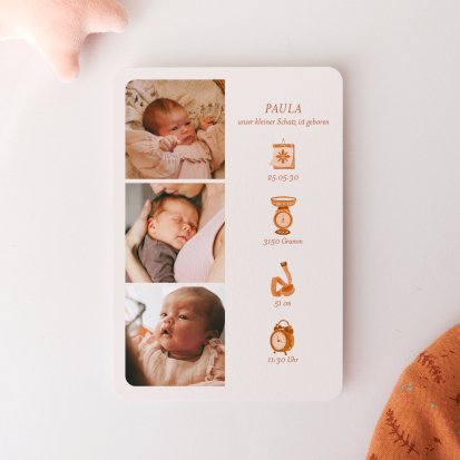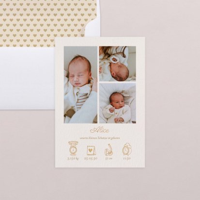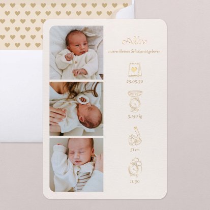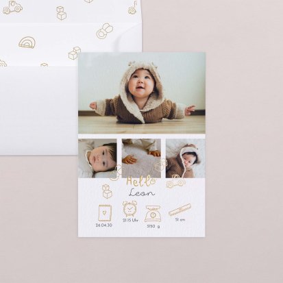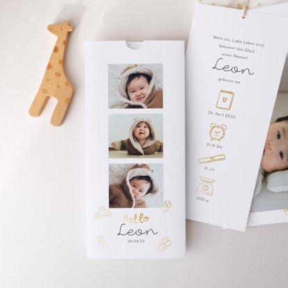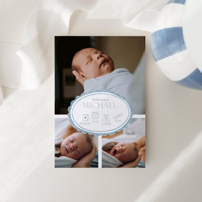 Ihr kleines Wunder hat endlich das Licht der Welt erblickt? Jetzt ist der perfekte Zeitpunkt, um Ihre Freude mit Ihren Liebsten zu teilen. Wählen Sie eine Geburtskarte und gestalten Sie sie ganz individuell mit Fotos und/oder Text, um Ihrem Babyglück Ausdruck zu verleihen.