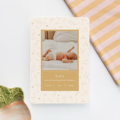 Ihr kleines Wunder hat endlich das Licht der Welt erblickt? Jetzt ist der perfekte Zeitpunkt, um Ihre Freude mit Ihren Liebsten zu teilen. Wählen Sie eine Geburtskarte und gestalten Sie sie ganz individuell mit Fotos und/oder Text, um Ihrem Babyglück Ausdruck zu verleihen.