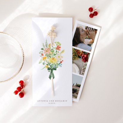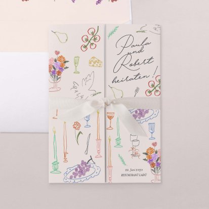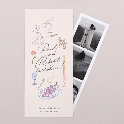 Eine solche Einladung ist nicht nur genauso einzigartig wie Ihre Liebesgeschichte, sondern auch ein echter Blickfang für Ihre Gäste. So können sie die Einladung dekorativ an die Pinnwand oder eine gut sichtbare Stelle in der Wohnung platzieren und schlagen zwei Fliegen mit einer Klappe: Sie erinnern sich jederzeit daran, wann und wo Ihre Hochzeit stattfindet – und haben zugleich ein hübsches Deko-Element in ihrem Zuhause.