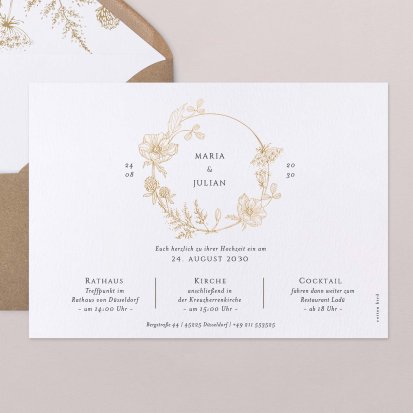 Entdecken Sie unsere große Auswahl an Hochzeitseinladungen in vielen verschiedenen Formaten und Stilrichtungen.