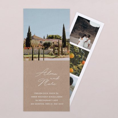 Entdecken Sie unsere große Auswahl an Hochzeitseinladungen in vielen verschiedenen Formaten und Stilrichtungen.
