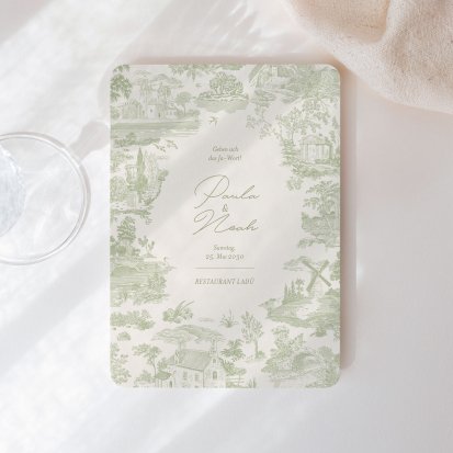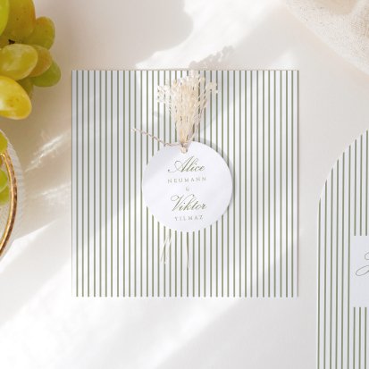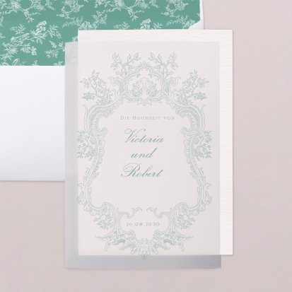 Sie sind von unseren Hochzeitseinladungen verzaubert? Das können wir gut verstehen. Daher bieten wir gleich mehrere Produkte im gleichen Design an. Ordern Sie zu Ihren Hochzeitseinladungen passende Umschlag-Einlagen hinzu und zeigen Sie, wie wichtig Ihnen dieser Tag ist. Außerdem finden Sie passend zu den Hochzeitseinladungen elegante Sticker zum Verschönern der Briefumschläge, Menükarten oder dem Festsaal. Außerdem bei uns im Sortiment: