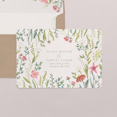 Entdecken Sie unsere große Auswahl an Hochzeitseinladungen in vielen verschiedenen Formaten und Stilrichtungen.
