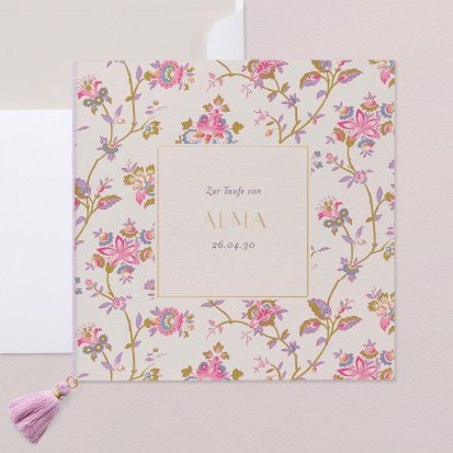 Tipp: Wählen Sie zuerst Ihre Taufkarte und stimmen Sie anschließend die gesamte Taufdekoration darauf ab – von der Tischdeko bis zu den Gastgeschenken.