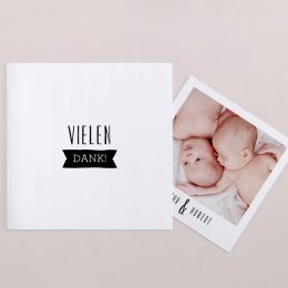 Das Format dieser quadratischen Geburtskarte ist ein echter Klassiker - eine Klappkarte im Querformat, die Sie mit Ihrem Text und Foto gestalten können.