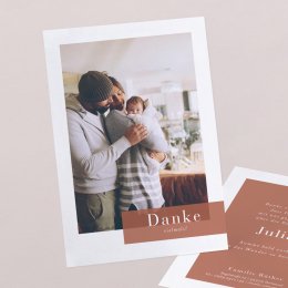 Eine Geburtskarte ergänzt mit Ihrem schönsten Foto Ihres kleinen Lieblings. Lassen Sie sich vom Hauch der erdigen Farben des Modells Ginger verführen und Überbringen Sie damit die schönste Nachricht der Welt.