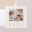 Die Geburtskarte mit Foto „Fotostreifen - Gold“ wird durch zarte goldene Details veredelt und bringt die ersten Fotos Ihres Babys besonders gut zur Geltung. Eine strahlende und raffinierte Kreation, perfekt, um die schönste Nachricht zu verkünden.