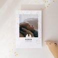 Die rechteckige Geburtskarte im Hochformat lässt sich auf der Vorder- und Rückseite mit Ihren Fotos und Ihrem Text gestalten.