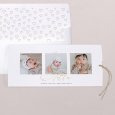 Die rechteckige Geburtskarte im Hochformat lässt sich auf der Vorder- und Rückseite mit Ihren Fotos und Ihrem Text gestalten.