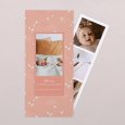 Die Geburtsanzeige In den Wolken zeigt eine Schar kleiner Vögel vor einem Himmel in zarten Pfirsichrosa-Tönen. Ein sanftes und friedliches Design, das perfekt ist, um Ihr Glück auf sanfte Weise anzukündigen.