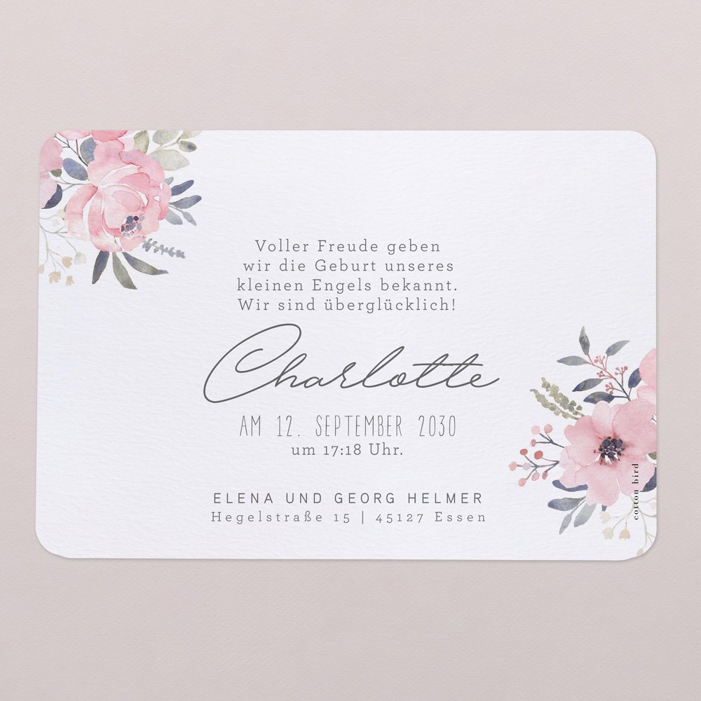 Schlicht und schön - diese große Geburtskarte im Querformat hat weich abgerundete Ecken und ist beidseitig personalisierbar.