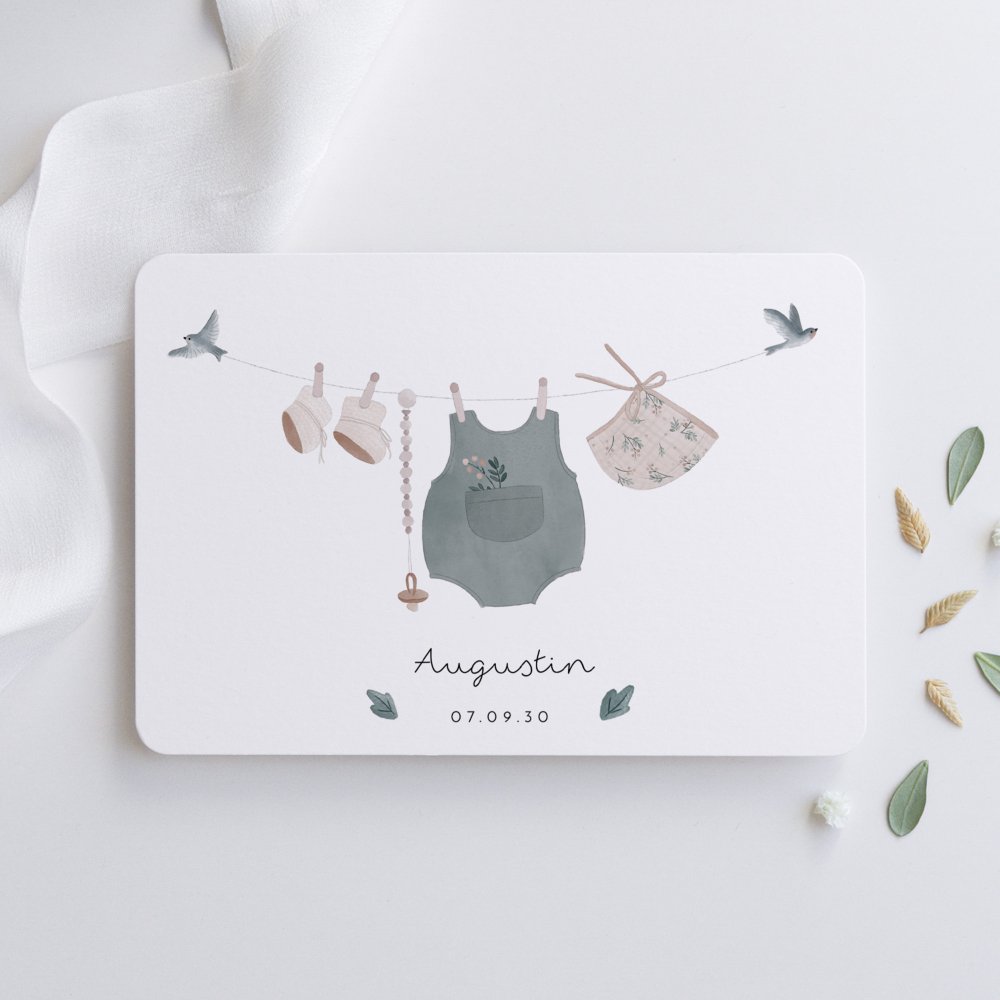Schlicht und schön - diese große Geburtskarte im Querformat hat weich abgerundete Ecken und ist beidseitig personalisierbar.
