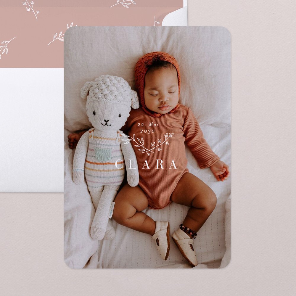 Schlicht und schön - diese große Geburtskarte im Hochformat hat sanft abgerundete Ecken und ist beidseitig personalisierbar.