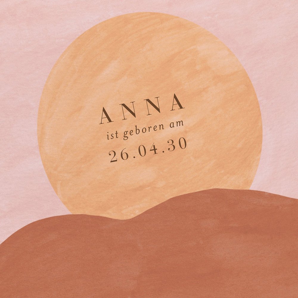 Diese Geburtsanzeige stell den magischen Moment eines Sonnenaufgangs dar. Entdecken Sie jetzt unser Modell Dawn - Terracotta und teilen Sie die frohe Botschaft mit Ihren Lieben.