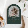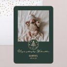 Teilen Sie Ihr Babyglück mit der Geburtskarte Green and gold. Winterliches Grün, elegante Schrift und ein kleiner Weihnachtsbaum in Gold machen dieses Design perfekt, um Ihr Wintermärchen zu erzählen.