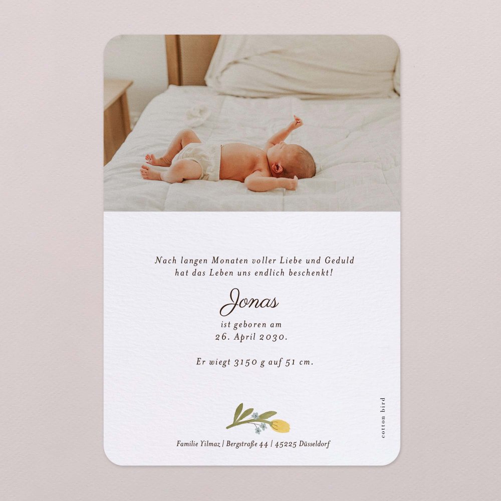 Schlicht und schön - diese große Geburtskarte im Hochformat hat sanft abgerundete Ecken und ist beidseitig personalisierbar.