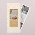 Das besondere Format dieser Geburtskarte wird Ihre Liebsten begeistern! Dieses Modell besteht aus einer hochformatige Klappkarte und einem herausnehmbaren Fotostreifen, der als Andenken aufbewahrt, an den Kühlschrank gepinnt oder als Lesezeichen benutzt werden kann.