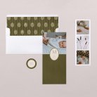 Die Geburtskarte Green Velvet vereint die sanfte Haptik von Cordstoff mit einem eleganten Design. Der Name Ihres Kindes steht im Mittelpunkt eines stilvollen Emblems, umgeben von tiefen Waldgrüntönen – eine originelle und edle Wahl. - Farbe: Grün, Oliv, Beige - Thema: Originell, chic