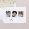 Das besondere Format dieser Geburtskarte wird Ihre Liebsten begeistern! Dieses Modell besteht aus einer hochformatige Klappkarte und einem herausnehmbaren Fotostreifen, der als Andenken aufbewahrt, an den Kühlschrank gepinnt oder als Lesezeichen benutzt werden kann.