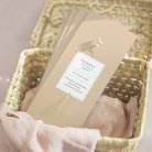 Verkünden Sie die Geburt Ihres Kindes mit einer kleinen Überraschung! Das schlichte, moderne Design der Geburtskarte Paola wird elegant von den zarten Amarelino Trockenblumen abgerundet (wir empfehlen drei Blüten pro Karte).