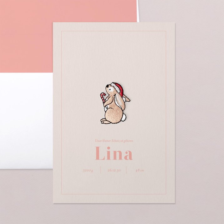 Wir freuen uns, Ihnen unsere Geburtskarten mit gesticktem Aufnäher zu präsentieren - eine originelle und exklusive Kreation aus unserem Atelier! Teilen Sie Ihr Glück auf die süßeste Art und Weise mit einer Karte, die mit einem niedlichen Accessoire in Form eines Kuscheltieres oder Waldtiers gespickt ist und einen Hauch von Retro-Feeling versprüht. Wählen Sie Ihren Lieblingsaufnäher und gestalten Sie eine einzigartige Karte zur Geburt Ihrer Tochter oder Ihres Sohnes. Die Geburtskarte Good times Rosa hat ein minimalistisches Design in sanften Farbtönen. Überraschen Sie Familie und Freunde mit dieser süßen Karte, die Sie für einen Jungen oder ein Mädchen selbst online personalisieren können.