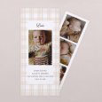 Inspiriert vom zeitlosen Tartan-Stoff, präsentiert die Geburtskarte mit Foto „Beige Tartan“ liebevoll das schönste Foto Ihres Kindes. Beigefarbenes Tartanmuster und elegante Schrift verbinden sich auf dieser Karte, ideal für Eltern, die sich eine zarte und herzerwärmende Ankündigung wünschen.
