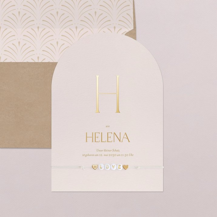 Die Geburtskarte Apollina II stellt Ihr Baby in den absoluten Mittelpunkt: der Name und der Anfangsbuchste des Vornamen sind mit eleganter Goldfolie veredelt. Ein zeitgenössisches Design, das die Geburt Ihres Kindes auf stilvolle Weise ankündigt.